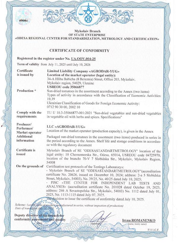 Наша компанія виготовляє сухі в’ялені томати та консервовані в’ялені томати з використанням рослинної олії, пряних трав та часнику. Вся продукція є 100% натуральною. Ми постійно розширюємо асортимент, щоб радувати вас корисними та смачними томатами.
